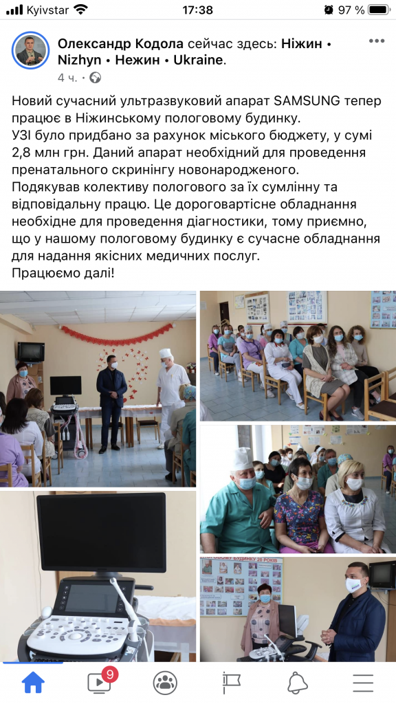«Новий сучасний ультразвуковий апарат SAMSUNG тепер працює в Ніжинському пологовому будинку.