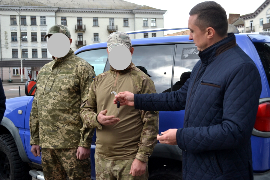 Міський голова Ніжина Олександр Кодола передав ключі від позашляховика нашим воїнам і подякував за захист нашої землі, нашої рідної України.