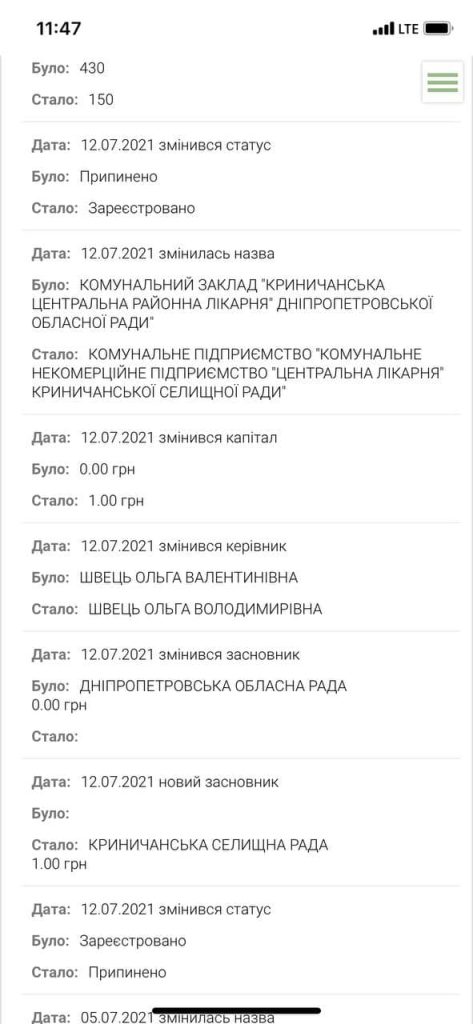 Раніше пані Ольга керувала комунальним закладом “Криничанська Центральна Районна Лікарня Дніпропетровської Обласної Ради”. Нам, ніжинцям, головного медика представили як Ольга Володимирівна. Хоча згідно з документацією даного медичного закладу є ще Ольга Валентинівна Швець. За інформацією активістки Лариси Жукової, яка спирається на власні джерела, це одна і та ж людина.